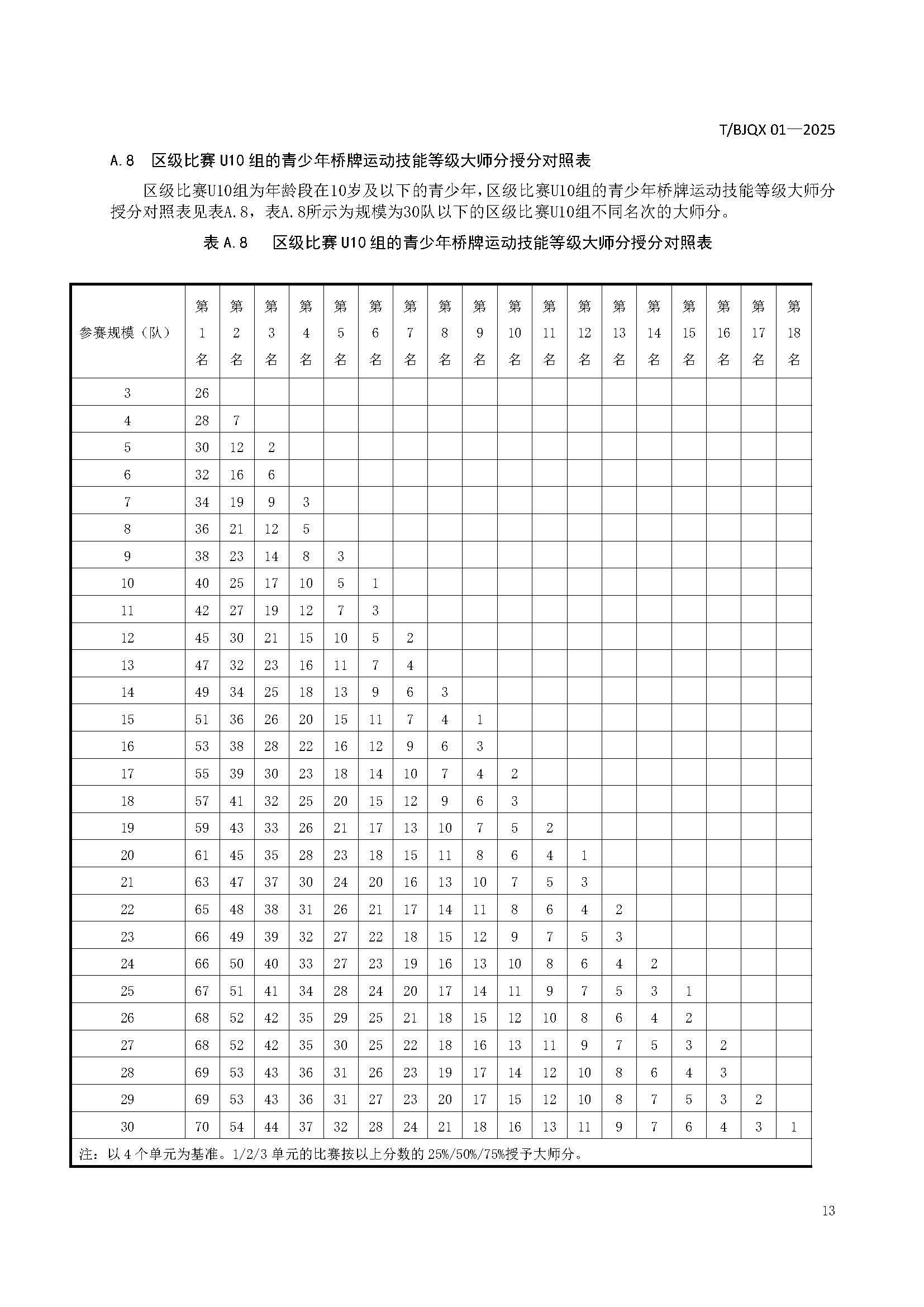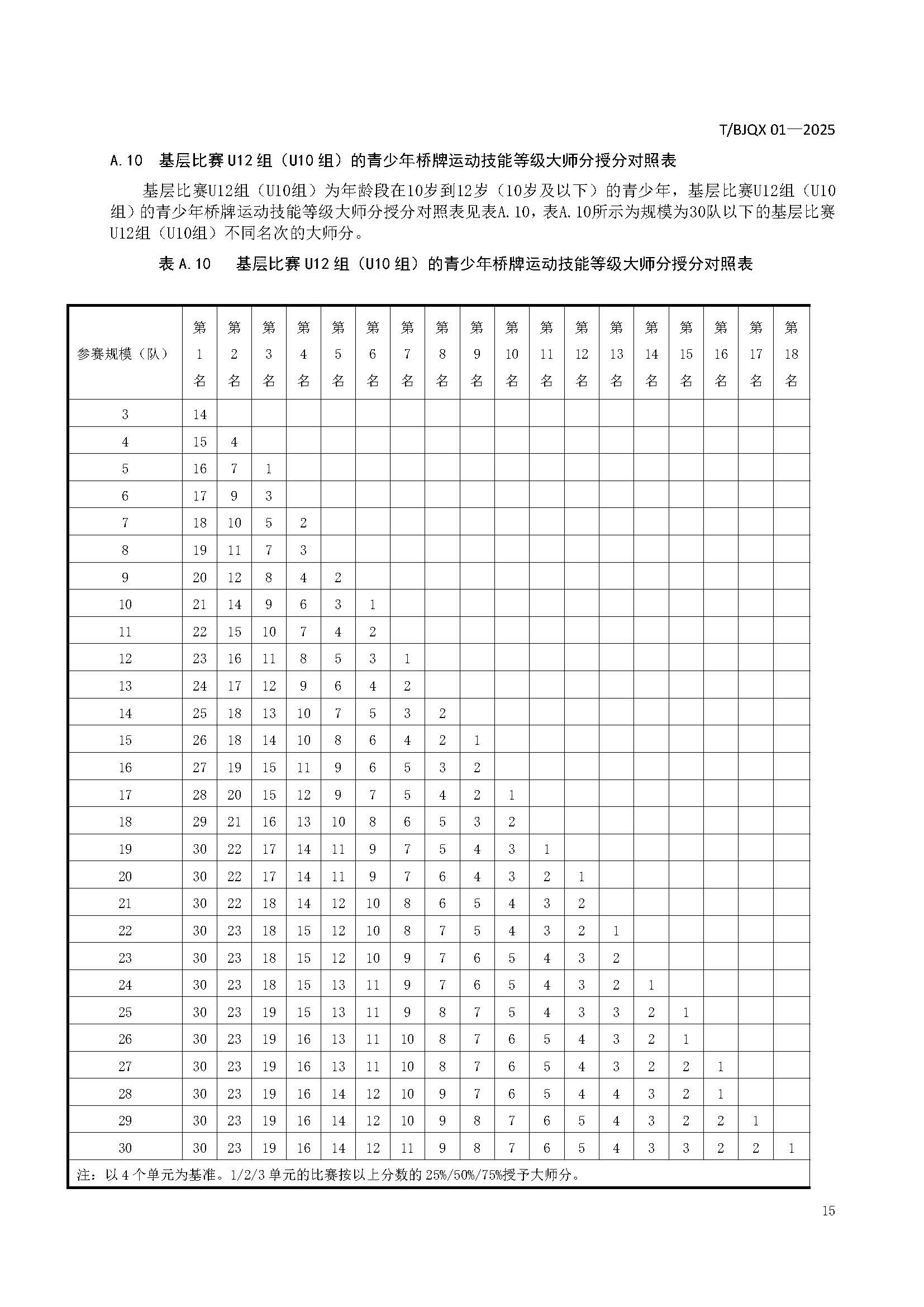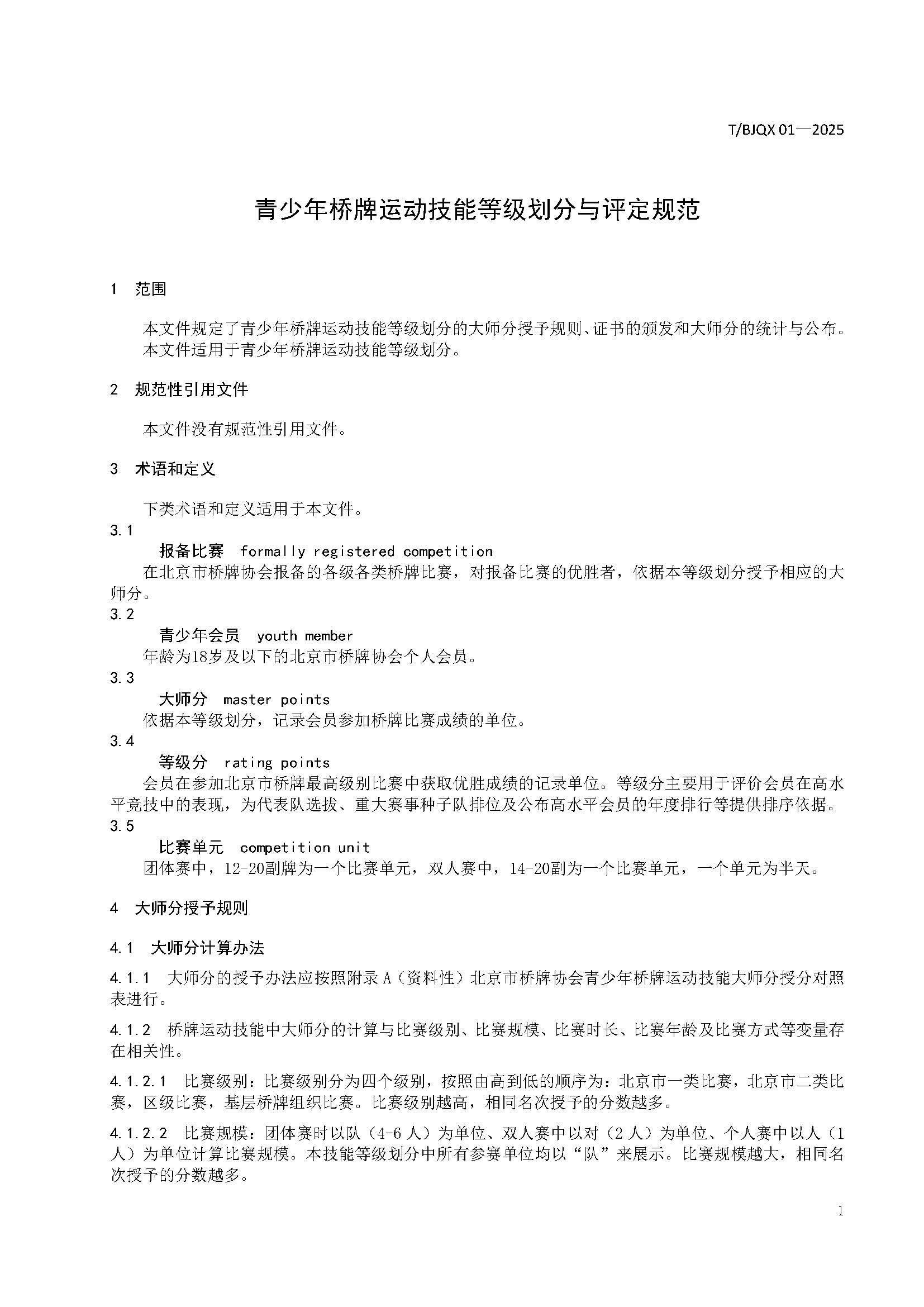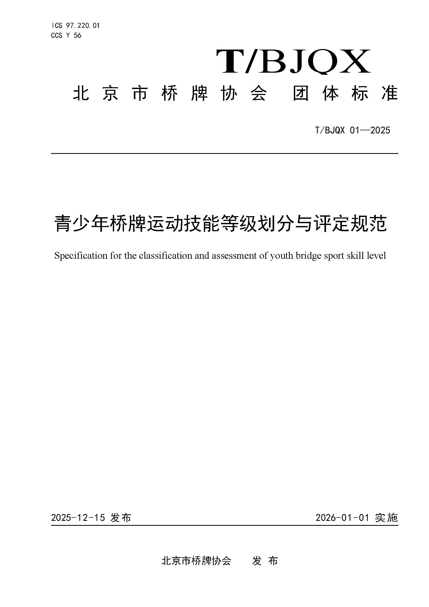 青少年桥牌运动技能等级划分与评定规范