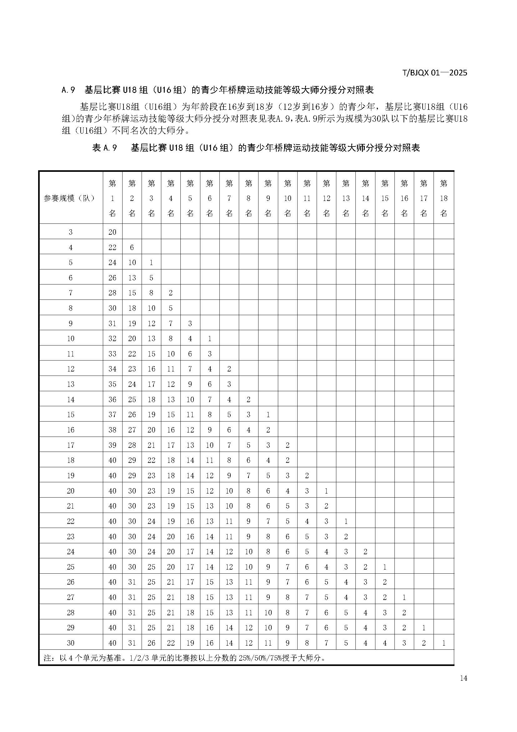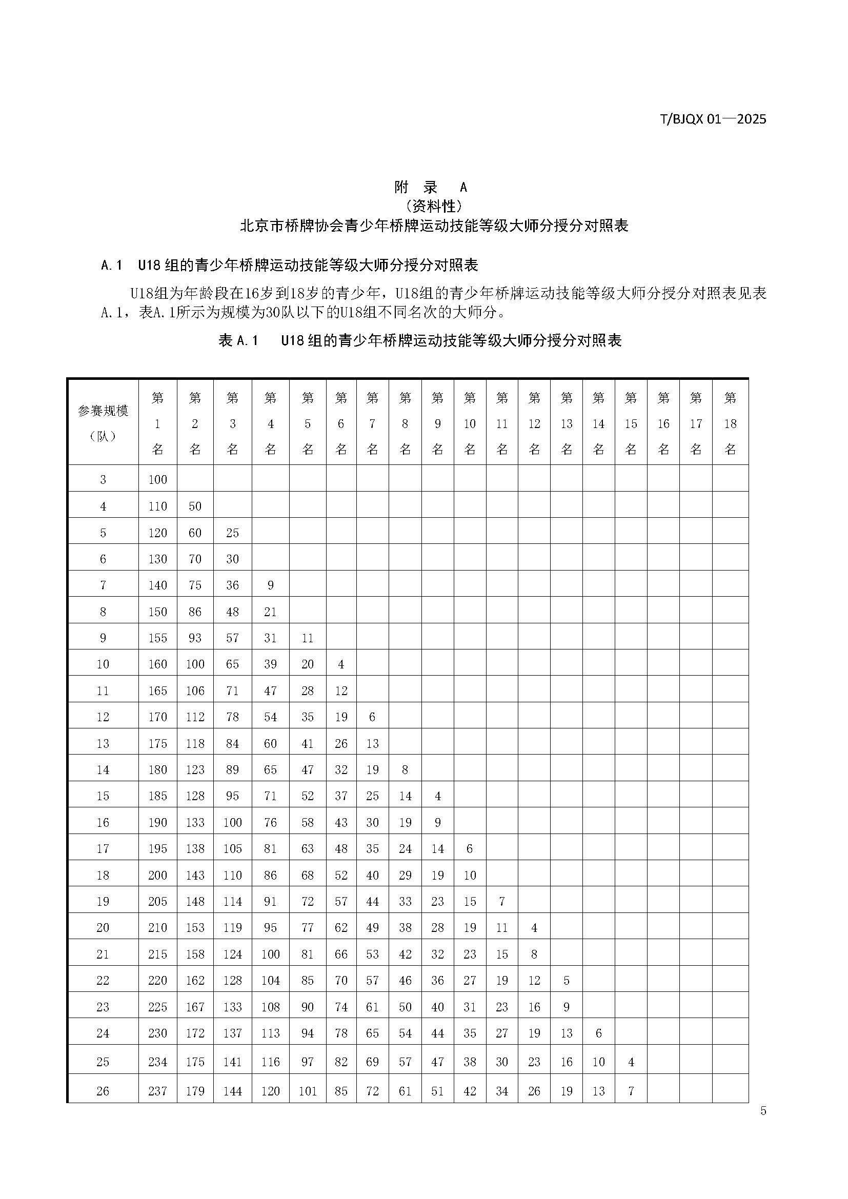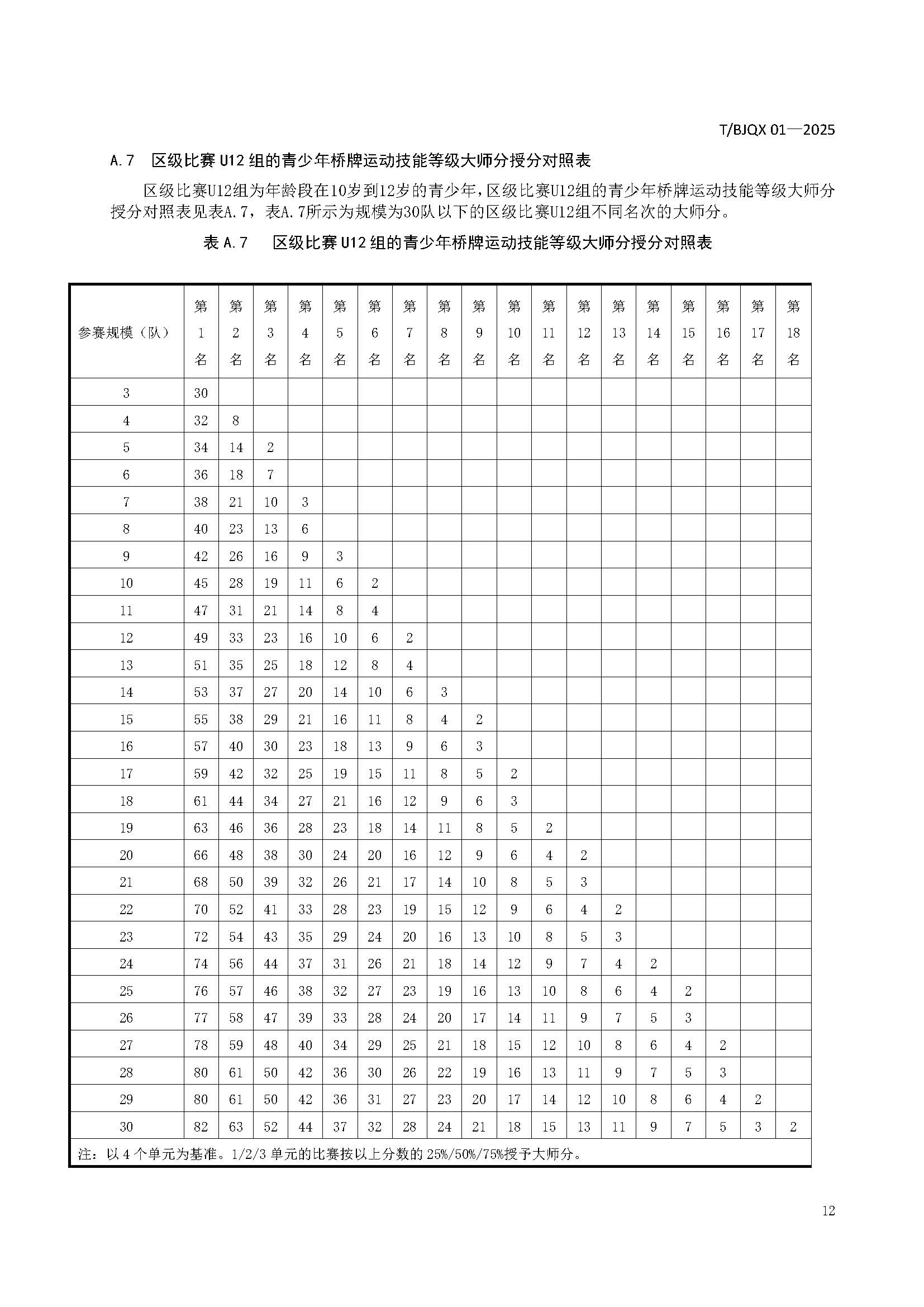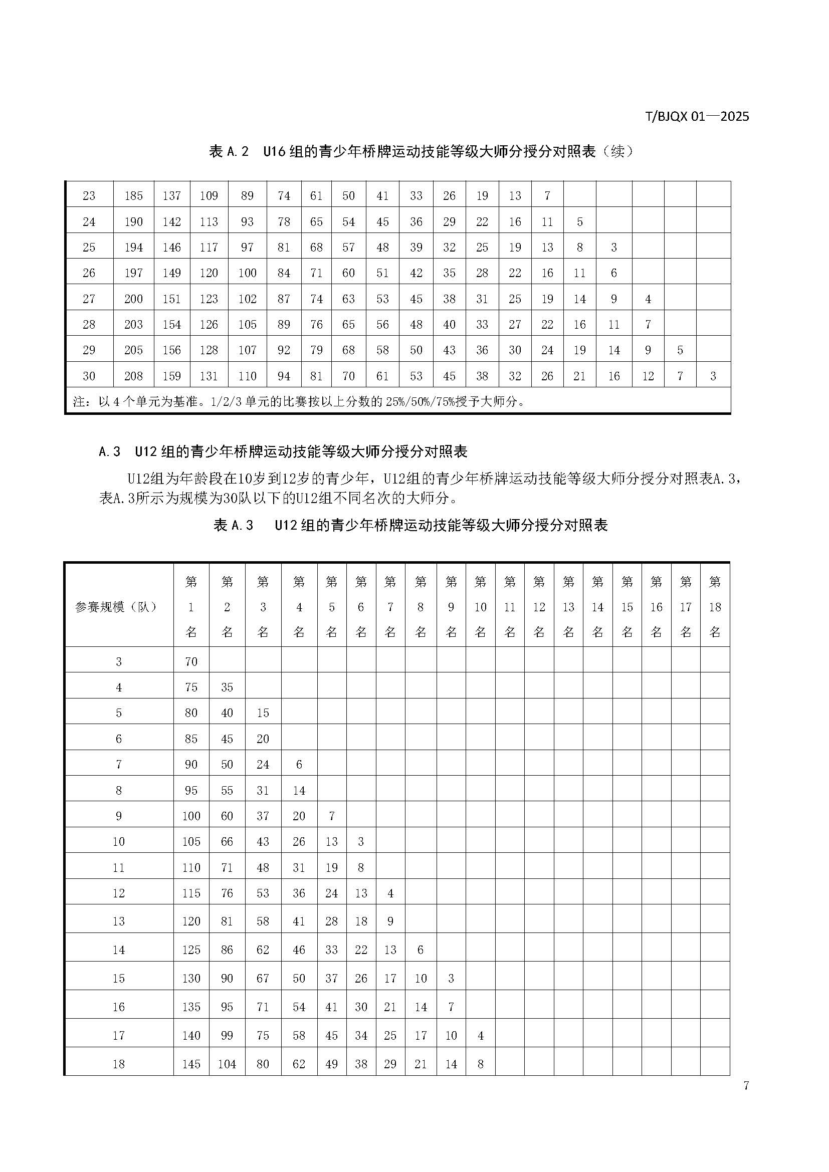 青少年桥牌运动技能等级划分与评定规范